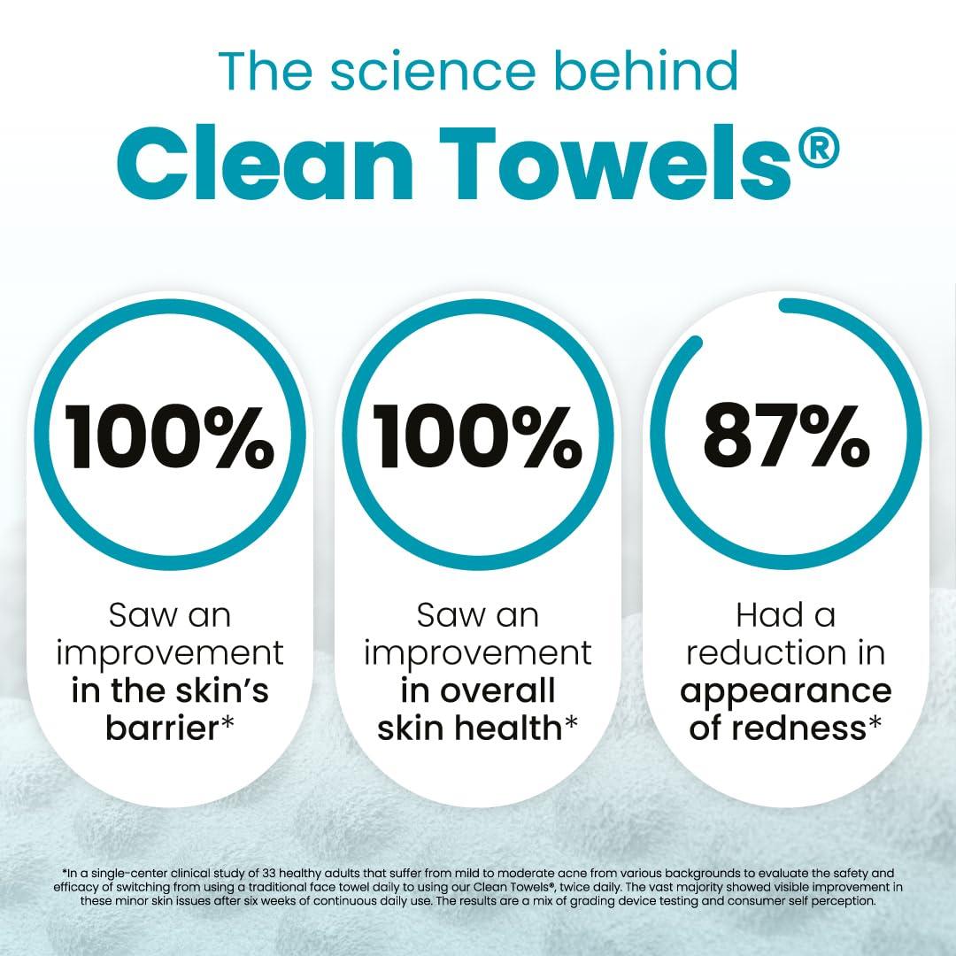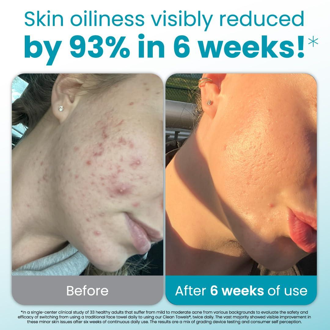 DERMATOLOGIST APPROVED FOR BLEMISH-PRONE SKIN – 10 single-use, dry facial towels. The face towel for blemish-prone skin — dermatologist-approved and clinically shown to help with excess oil and visible redness in 3 weeks or less, even while traveling.